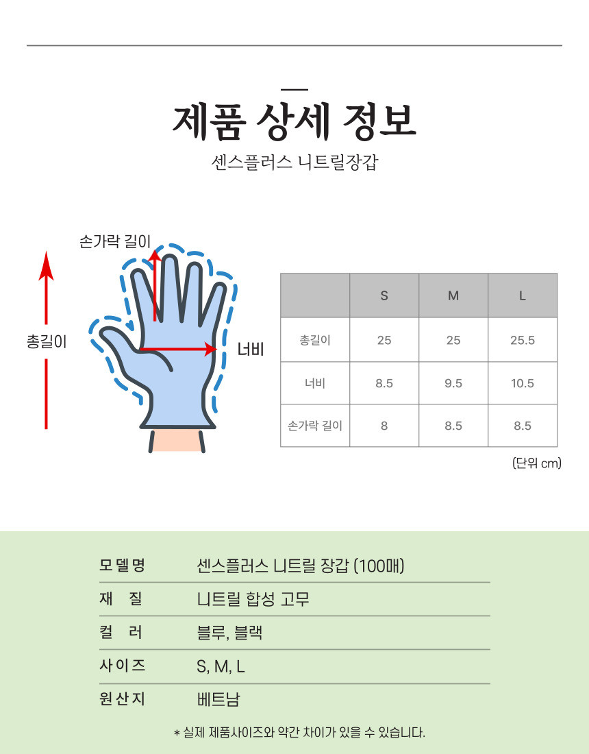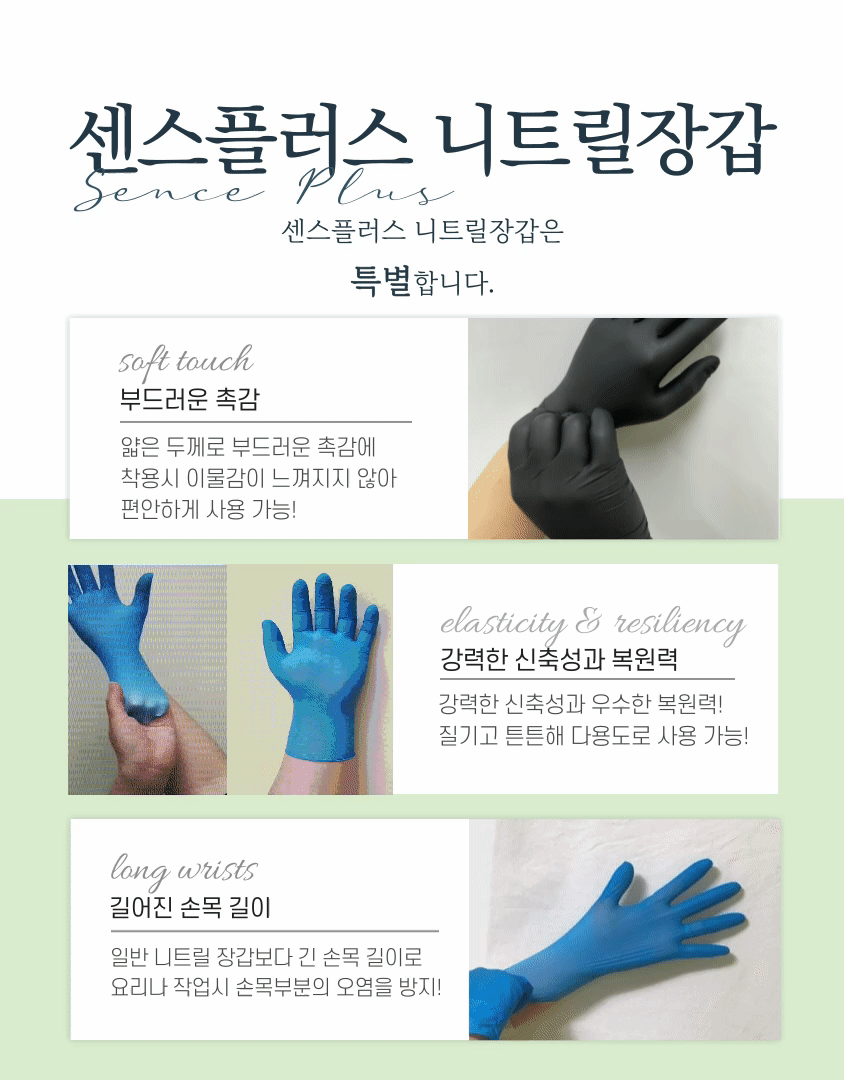 센스플러스 니트릴 장갑 100매 > 고무/니트릴 장갑